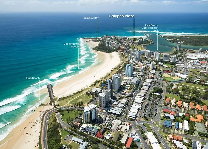 L'hotel est placé dans le quartier Coolangatta, à 7 km du Sanctuaire animalier de Currumbin et à quelques pas de Timezone Coolangatta. Le Port de plaisance Tweed Marina se trouve à 16 minutes à pied de Calypso Plaza Resort Unit 215, tandis que l'aéroport international de Gold Coast est à 5 km. Il faut également non loin pour rejoindre Presqu'île Point Danger. L'hotel est également situé à seulement 150 mètres de l'arrêt de bus Coolangatta Transit.